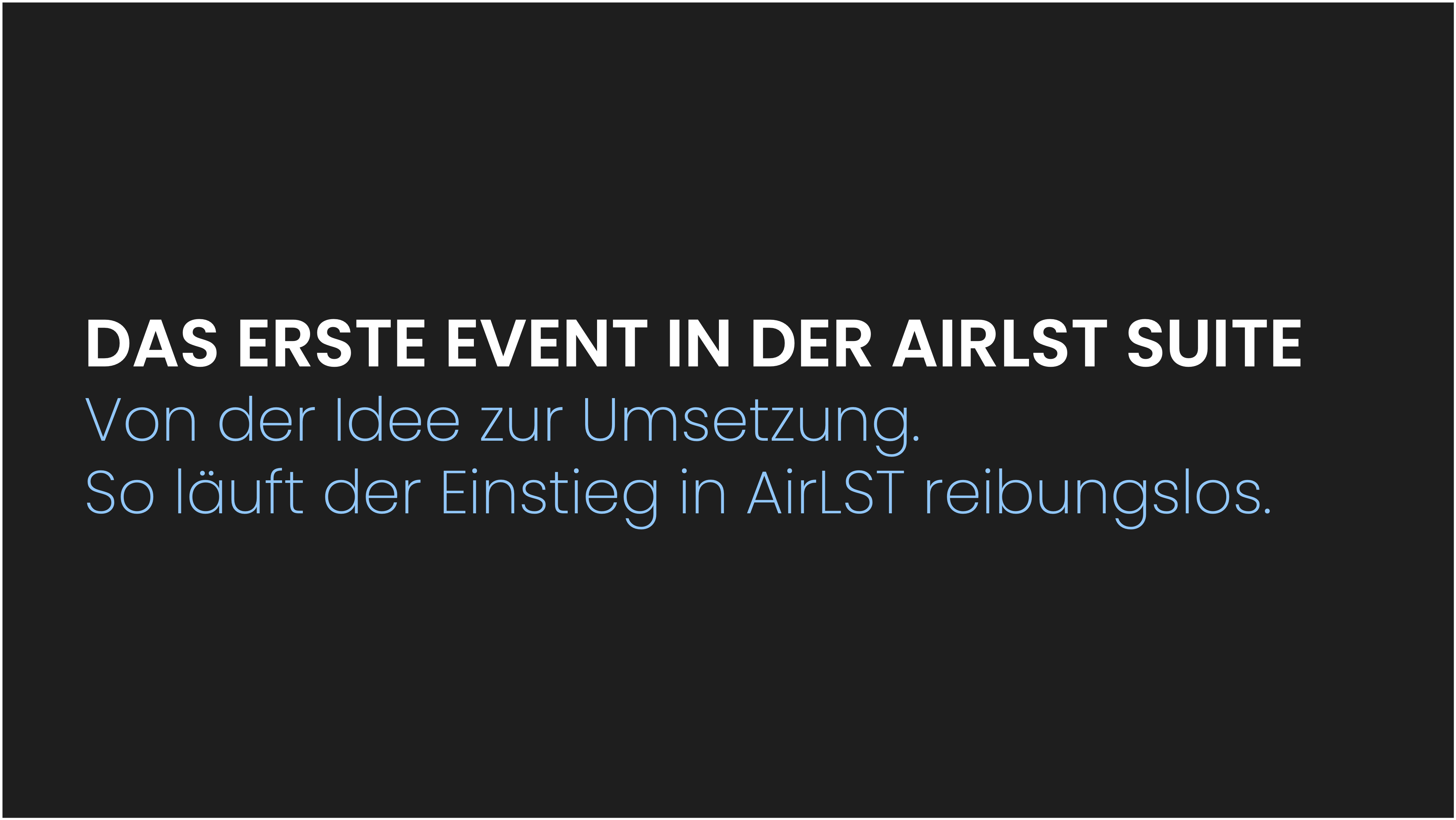 In diesem kompakten Webinar zeigen wir Ihnen, wie Sie Ihr erstes Event mit der AirLST Suite erfolgreich umsetzen. Sie lernen, wie Sie eine Veranstaltung anlegen, von der Gästeliste über die Landingpage bis hin zur automatisierten Kommunikation per E-Mail.